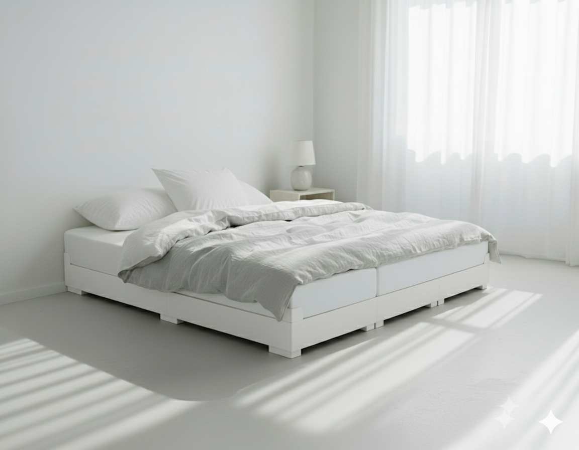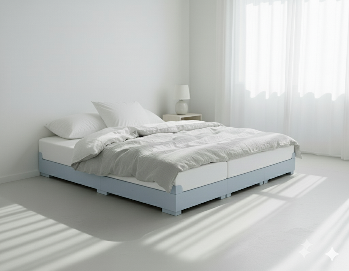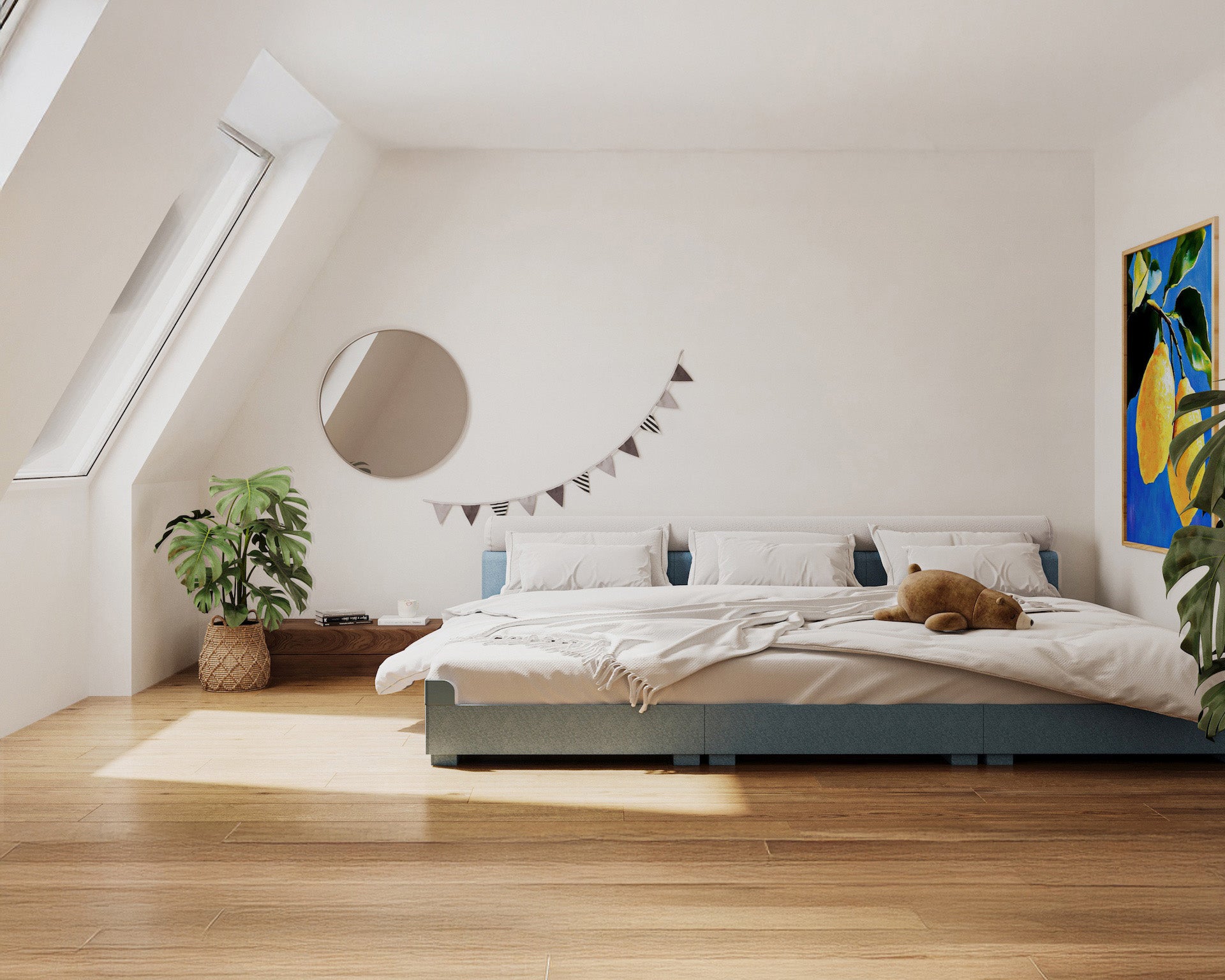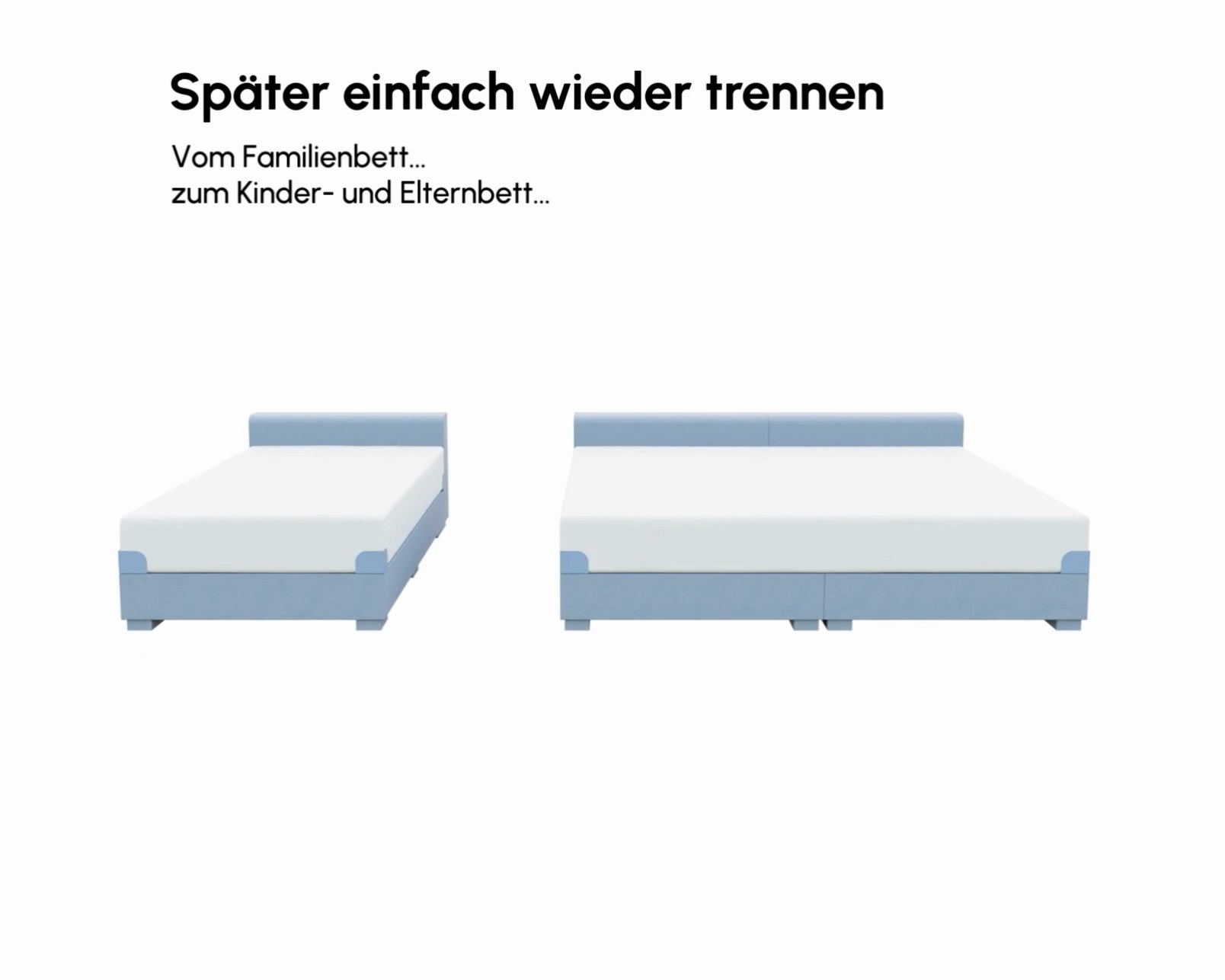 Unser Konzept ist darauf ausgelegt, dass ihr euer Bett jahrzehntelang nutzen könnt – und nicht bald schon wieder ein neues Bett braucht. Wenn die Zeit im Familienbett vorbei ist, lassen sich die Rahmen unkompliziert trennen und flexibel weiterverwenden. So entstehen zum Beispiel aus drei Rahmen ein Doppelbett und ein Kinderbett.