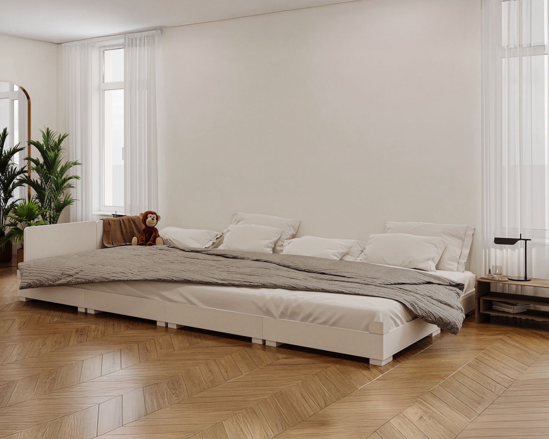 Hier beginnt euer Familienbett: Ein Rahmen, der sich zu einer riesigen, lückenlosen Liegefläche verbinden lässt.