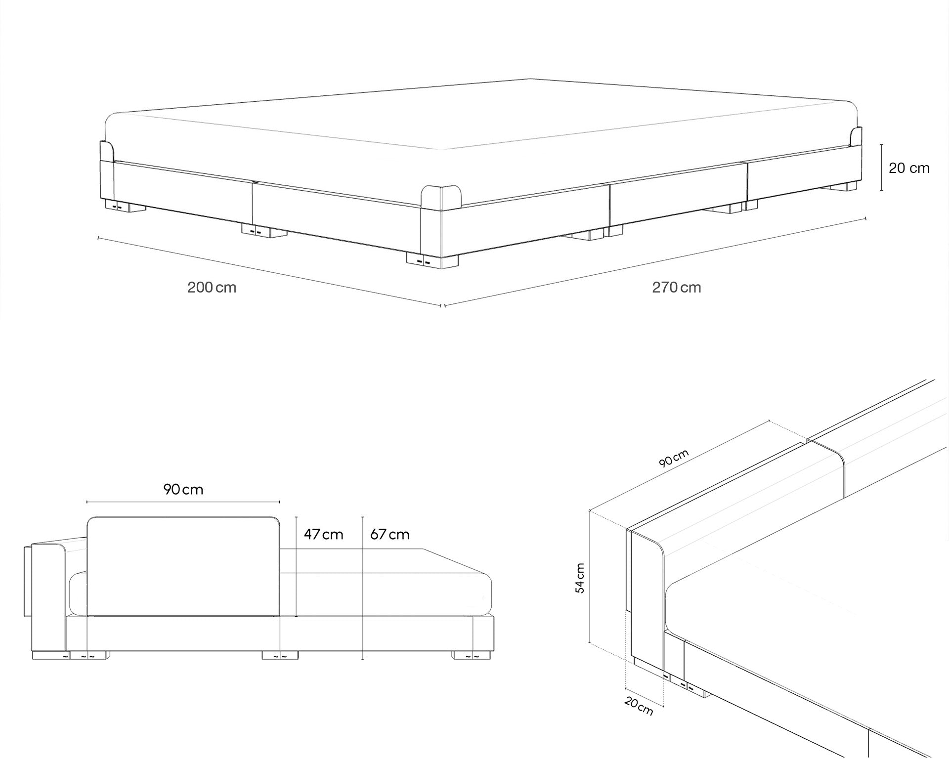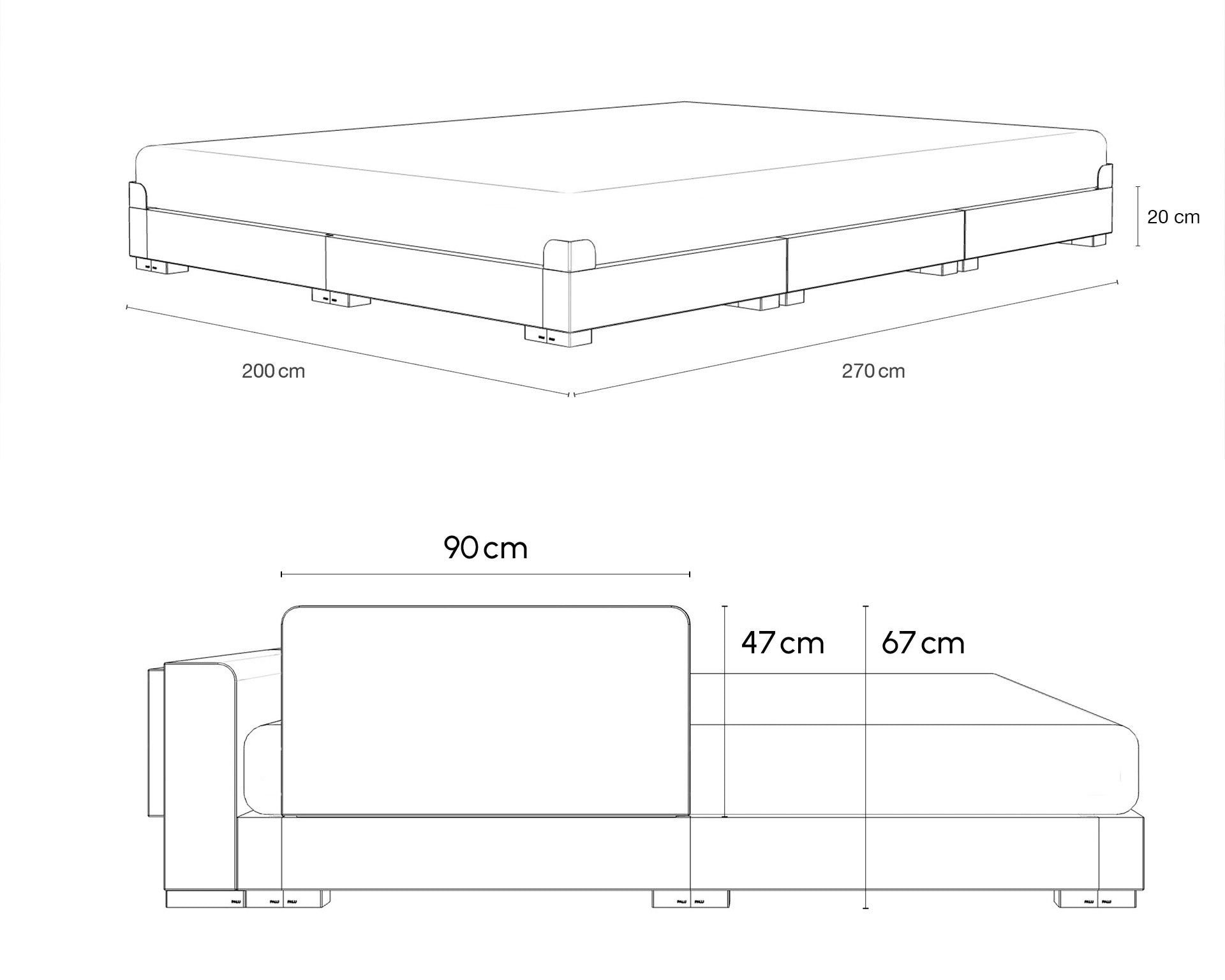 Breite x Länge des Bettrahmens: 270 x 200 cm