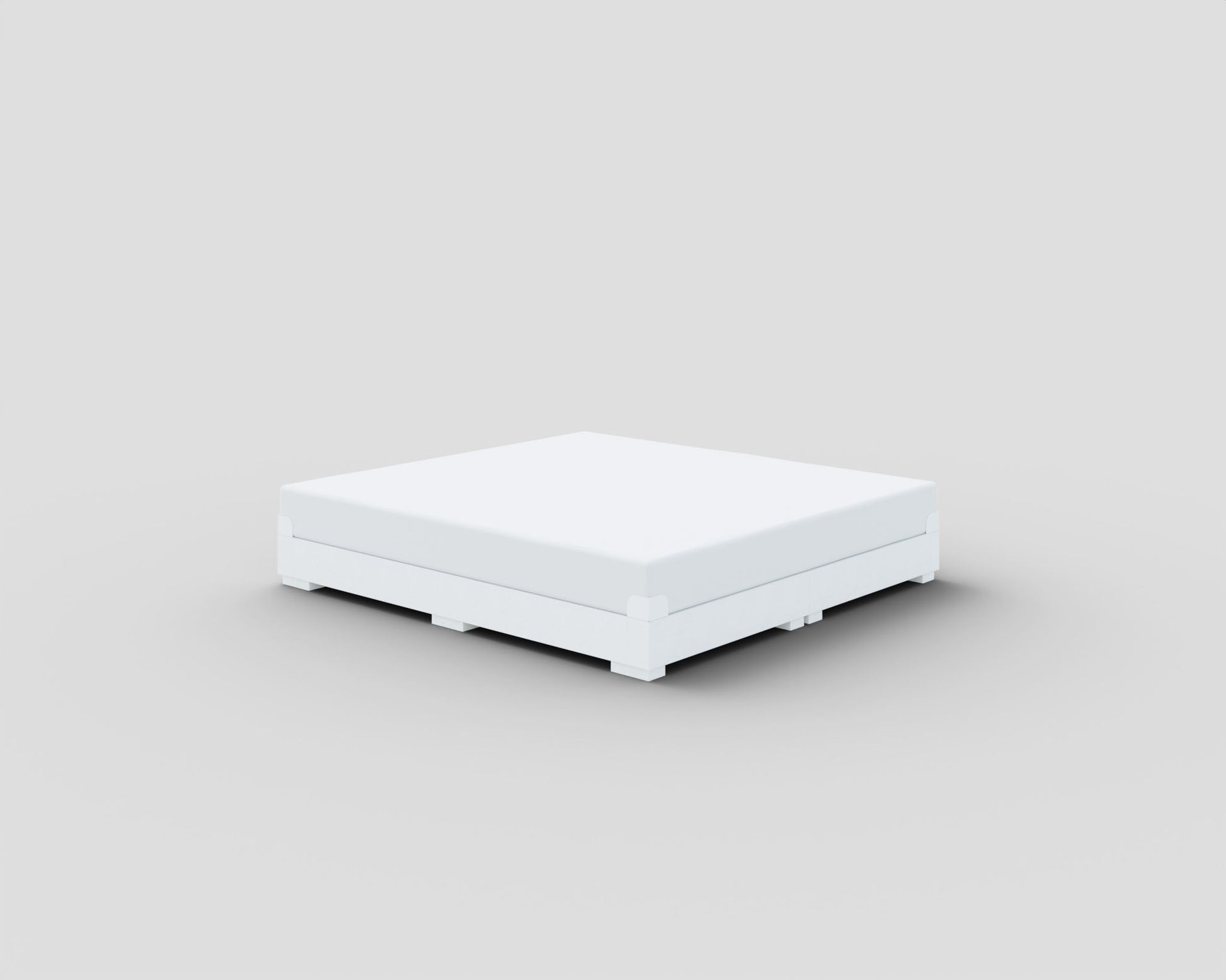 Ihr bestellt ohne Kopfteile und ohne Rausfallschutz: 2x Bettrahmen, 4x Eckmodule