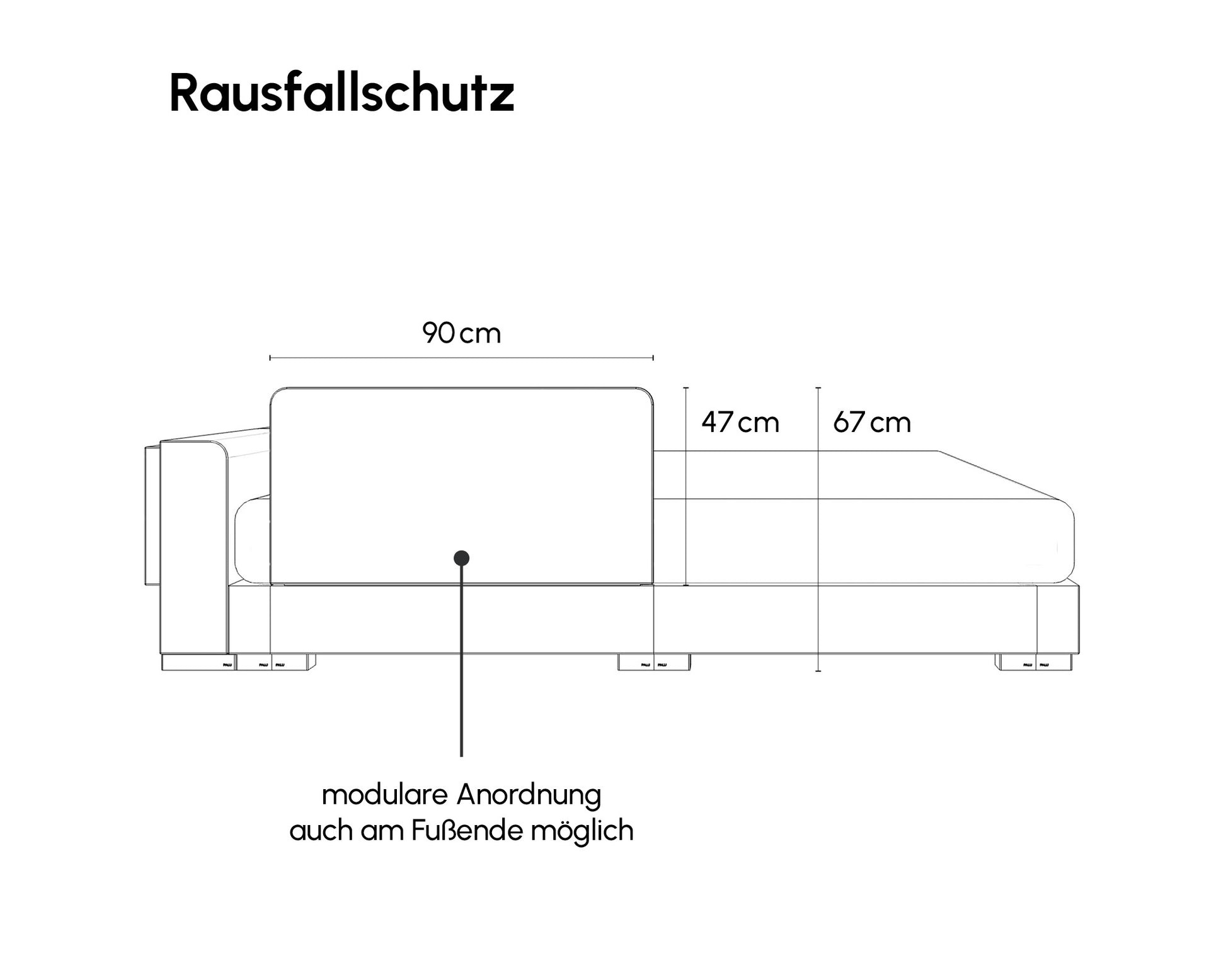 Wir setzen auf Monomaterialien, Produktion in Deutschland und ein durchdachtes Design, das echte Kreislauffähigkeit ermöglicht. Der Rahmen, das Kopfteil und der Rausfallschutz bestehen aus innovativem EPP, das zu 95 % aus Luft und zu 100 % recycelbar ist – extrem leicht, kompakt verpackt und damit nicht nur CO₂-sparend im Transport, sondern auch besonders kraftschonend im Aufbau - komplett ohne Werkzeug.