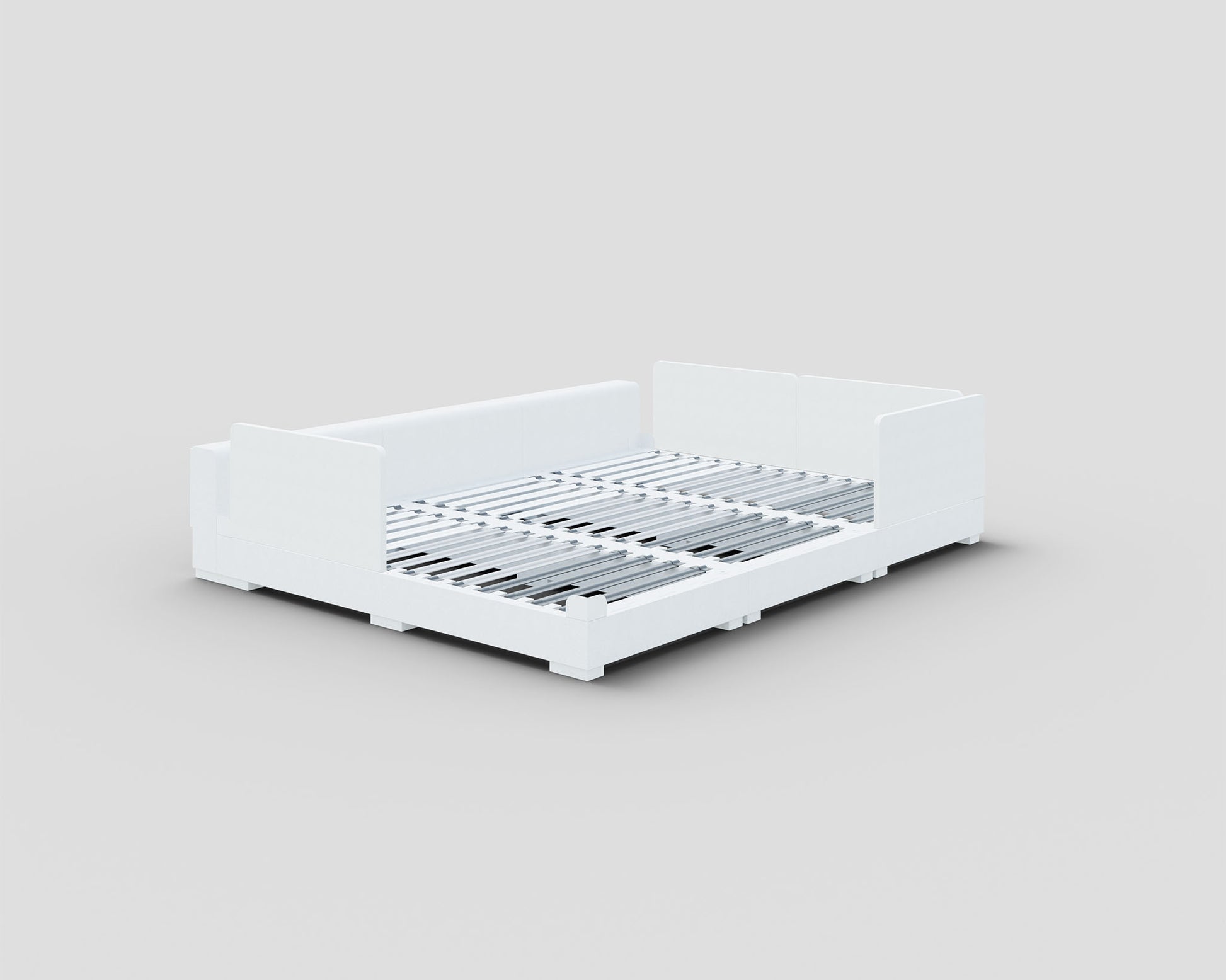 Wir setzen auf Monomaterialien, Produktion in Deutschland und ein durchdachtes Design, das echte Kreislauffähigkeit ermöglicht. Der Rahmen, das Kopfteil und der Rausfallschutz bestehen aus innovativem EPP, das zu 95 % aus Luft und zu 100 % recycelbar ist – extrem leicht, kompakt verpackt und damit nicht nur CO₂-sparend im Transport, sondern auch besonders kraftschonend im Aufbau - komplett ohne Werkzeug.